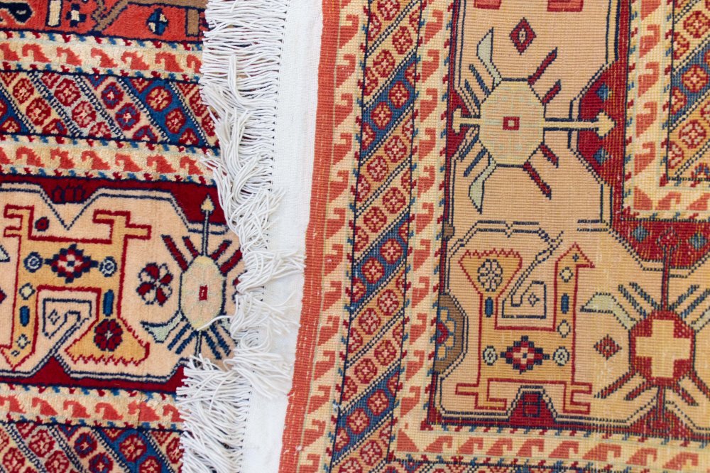 این فرش دستباف منحصربهفرد، نمونهای از تلفیق زیبای هنر و فرهنگ مناطق مختلف ایران است. با ابعاد دقیق ۲۹۰ در ۲۰۱ سانتیمتر، این فرش در خراسان بافته شده اما نقوش و طراحی آن کاملاً برگرفته از سبک اصیل قشقایی است، که همین ترکیب باعث شده یک اثر متفاوت و تماشایی شکل بگیرد. این فرش، بهخوبی نشان میدهد که چگونه هنر و ذوق ایرانی میتواند مرزهای جغرافیایی را پشت سر بگذارد و آثاری خلق کند که حاصل همنشینی فرهنگها و سنتهای متنوع باشد. نقشه کلی فرش، بسیار پر جزئیات و چشمگیر است. زمینه اصلی فرش به رنگ کرم روشن بافته شده که فضایی آرام و یکدست را شکل داده و بستر مناسبی برای جلوهگری نقوش متنوع فراهم کرده است. این نقوش بیشتر شامل تصاویر هندسی از حیوانات و پرندگان هستند؛ عناصری که در هنر قشقایی جایگاه ویژهای دارند و در این فرش به شکلی منظم اما با ظاهری زنده و پویا پراکنده شدهاند. این حیوانات و پرندگان هندسی نه تنها به فرش روح زندگی میبخشند بلکه داستانهای ناگفتهای از طبیعت و فرهنگ ایلیاتی را بازگو میکنند. یکی از بخشهای شاخص و بسیار جذاب این فرش، ترنج هندسی آن است که در مرکز قرار گرفته و به عنوان نقطهی کانونی فرش عمل میکند. این ترنج از سه لایه متمایز تشکیل شده که هر کدام با رنگ و طراحی خاص خود زیبایی منحصربهفردی دارند. لایهی مرکزی ترنج به رنگ کرم است و با پسزمینهی فرش هماهنگی کامل دارد، گویی بخش طبیعی از زمینه است که به شکل هندسی خودنمایی میکند. لایهی دوم یک حلقه نازک آبیرنگ است که همچون نواری ظریف به دور بخش مرکزی پیچیده شده و ظرافت خاصی به ترنج داده است. و سرانجام لایهی سوم که بزرگترین بخش ترنج محسوب میشود، به رنگ قرمز تند بافته شده و جلوهای گرم و پرقدرت به قلب فرش بخشیده است؛ ترکیبی که نگاه بیننده را بیاختیار به سمت مرکز فرش میکشاند و توازن زیبایی در کل اثر برقرار میکند. لچکهای این فرش نیز طراحی هندسی دارند و به رنگ نارنجی دیده میشوند. این لچکها در چهار گوشهی فرش جا خوش کردهاند و با فرم و رنگ خاص خود، مرز میان زمینهی اصلی و حاشیه را مشخص میکنند. حاشیهی فرش به رنگ کرم و همرنگ زمینهی اصلی بافته شده و همین موضوع باعث شده که حس یکپارچگی و هماهنگی دلنشینی ایجاد شود، به طوری که نقوش حیوانی و ترنجها بیشتر خود را نشان میدهند و جلوهای سهبعدی به نظر میرسد. یکی از ویژگیهایی که این فرش را بسیار جذاب و ارزشمند میکند، جزئیات فراوان و پیچیدهی آن است. هر بار که به این فرش نگاه کنید، میتوانید یک نکته تازه یا یک ظرافت پنهان را کشف کنید؛ چه در نقشهای حیوانات، چه در چینش خطوط و چه در نحوه ترکیب رنگها. این ویژگی نه تنها ارزش هنری فرش را بالا برده بلکه آن را به اثری تبدیل کرده که بهمرور زمان دلنشینتر و جذابتر میشود. این فرش دستباف، با تلاقی هنر قشقایی و مهارت بافندگان خراسانی، نمونهای بارز از هنر ایرانی است که هم اصالت و هم نوآوری را در خود جای داده و میتواند زینتبخش هر فضایی باشد که نیاز به یک نقطهی تأکید هنری و فرهنگی دارد.