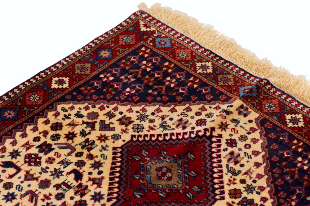 فرش دستباف یلمه بداهه - شکوه خیال، ظرافت بافت و روایت طبیعت در پشم و رنگ: این فرش دستباف یلمه نمونهای کمنظیر از اوج هنر بافندگی عشایری ایران است؛ فرشی بسیار خاص، با کیفیتی چشمگیر و جزئیاتی حیرتانگیز که آن را از بسیاری از فرشهای یلمهای که تاکنون بافته شدهاند، متمایز میکند. اگرچه فرش یلمه در طول سالها بارها و بارها بافته شده، اما فرشی با این سطح از ظرافت، تراکم بصری، بداههپردازی و کیفیت اجرا، بسیار نادر است.