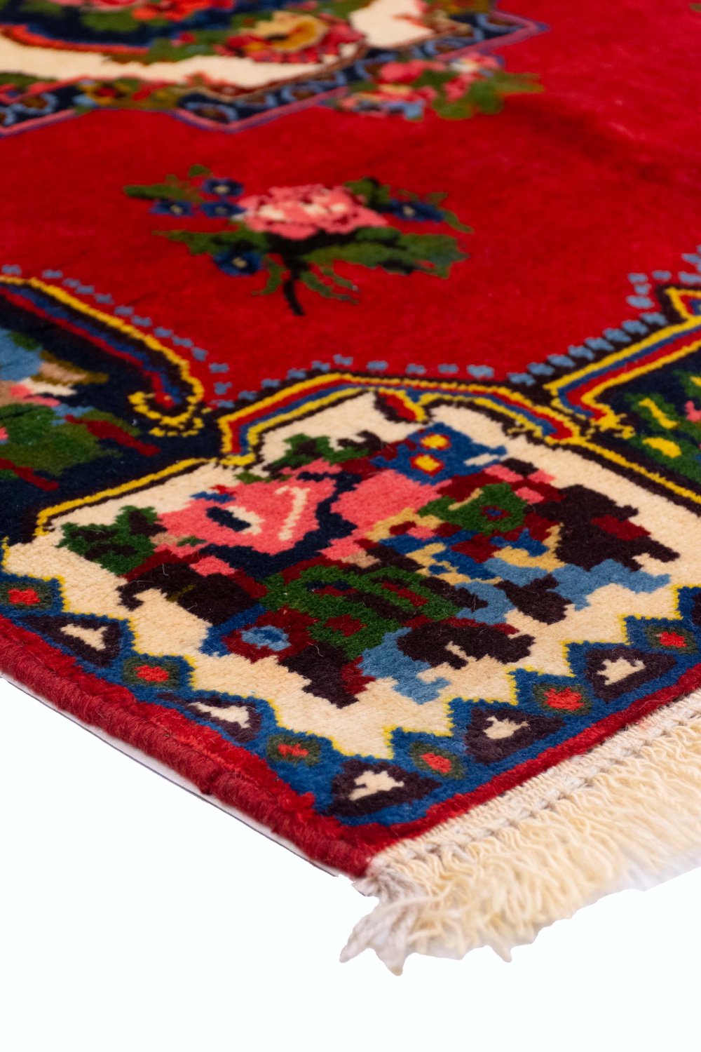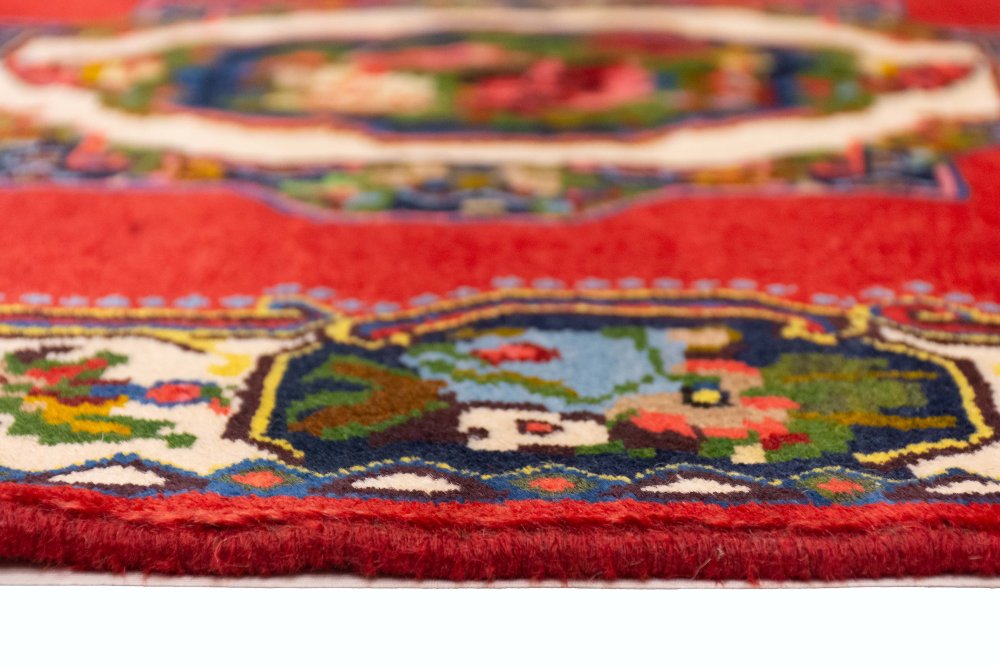 بافتهشده با پشم و رنگهای کاملاً گیاهی: تار، پود و پرز این فرش دستباف، همگی از پشم طبیعی تهیه شدهاند؛ موضوعی که نقش مهمی در دوام، کیفیت و ارزش فرش دارد. استفاده از پشم، باعث شده این فرش حس نرمی مطلوبی داشته باشد و در عین حال، مقاومت خوبی در برابر استفادهی روزمره از خود نشان دهد.