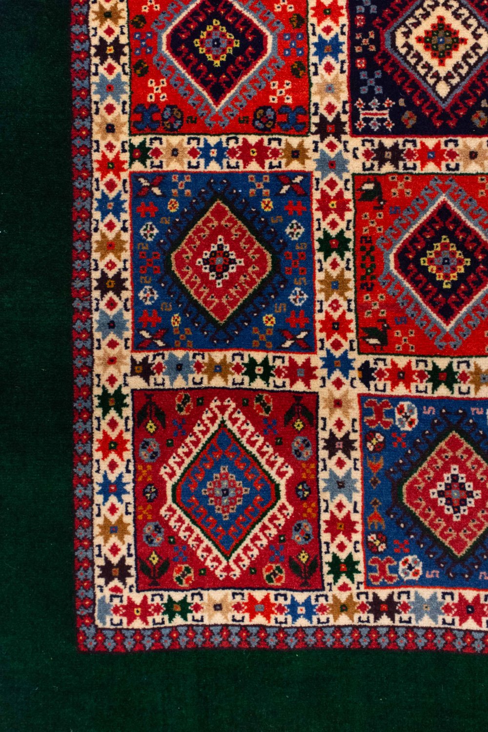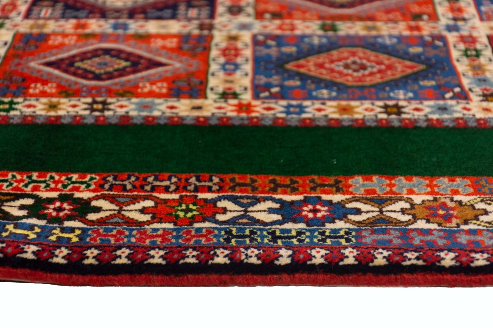 فرش دستباف قشقایی یلمه، توازن هنرمندانه در دل بداههبافی: فرش دستباف قشقایی یلمه، نمونهای شاخص از هنر اصیل عشایری ایران است که در آن، خلاقیت ذهنی با نظم بصری به شکلی شگفتانگیز در هم آمیختهاند. این فرش زیبا توسط بانوان هنرمند ایل قشقایی و از دل فرهنگ، طبیعت و زندگی کوچنشینی خلق شده و نمایی خاص، چشمنواز و متفاوت دارد؛ نمایی که در نگاه اول، اصالت و هویت آن را بهخوبی آشکار میسازد.