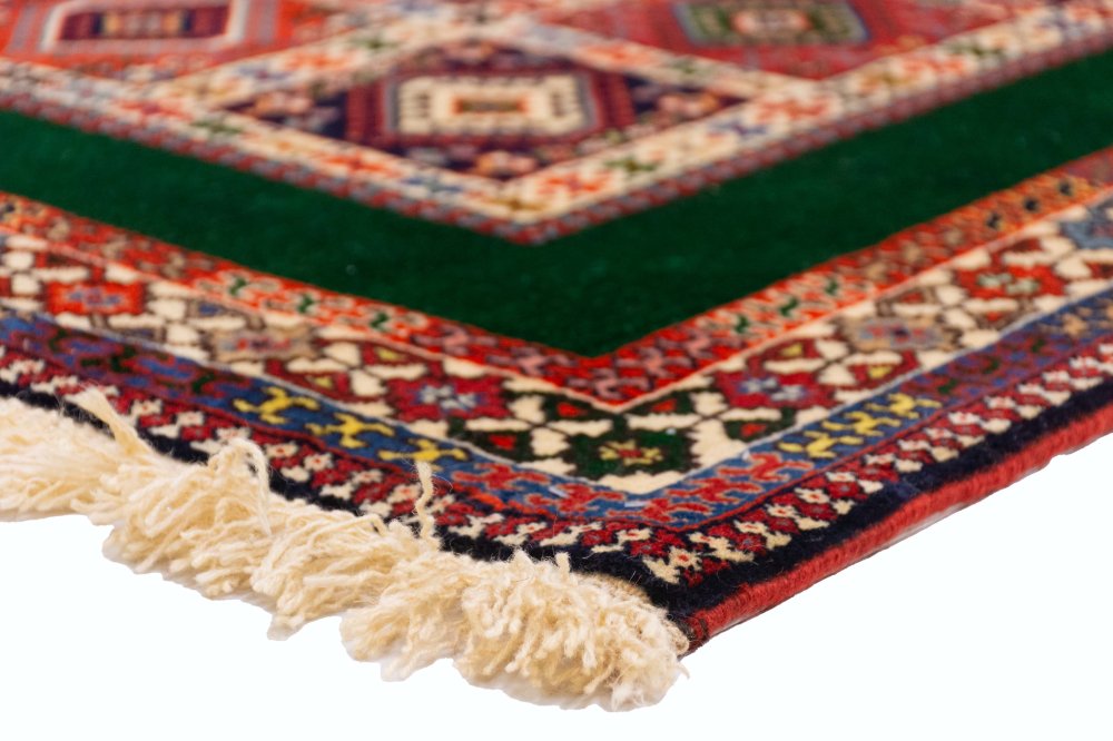 پس از حاشیه یشمی، فرش دارای چند طره ظریف و یک حاشیهی تکمیلی دیگر است که با دقت و ظرافت خاصی بافته شدهاند. این طرهها همچون جزئیات نهایی یک اثر هنری، ساختار فرش را کامل کرده و به آن عمق و هویت بیشتری میبخشند. ترکیب سادگی حاشیه یشمی با جزئیات ظریف طرهها، تعادلی زیبا میان سادگی و غنای بصری ایجاد کرده است.