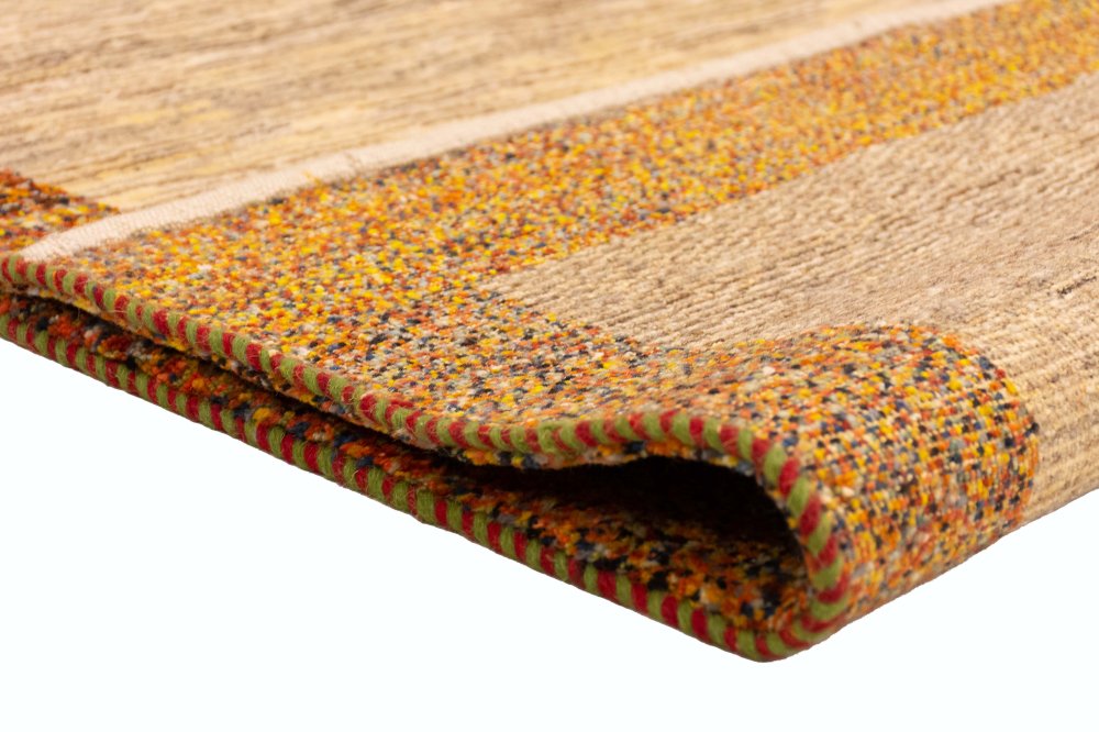انتخابی هوشمندانه برای دکوراسیون مدرن و سنتی: ترکیب زمینهی ساده و خنثی با حاشیهی رنگی فلفلنمکی، این گبه را به گزینهای عالی برای دکوراسیون مدرن، مینیمال و بوهو تبدیل کرده است. در عین حال، روح عشایری و بداههبافی قشقایی، اصالت و گرمای لازم را برای فضاهای سنتی نیز فراهم میکند.