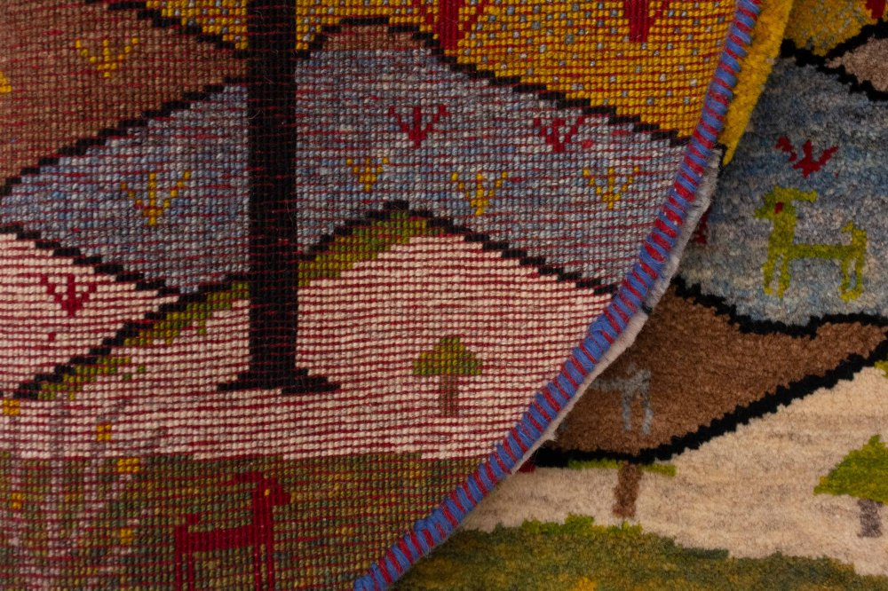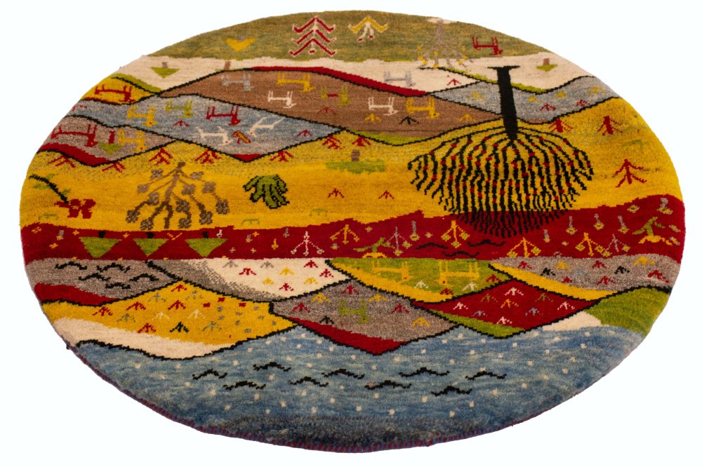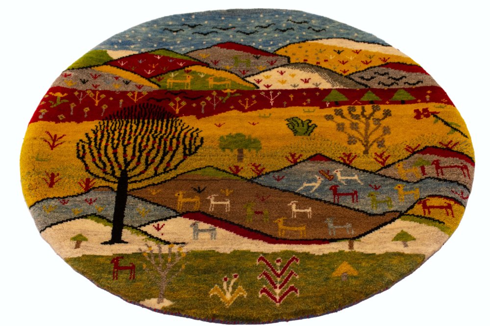 گبه گرد دستباف قشقایی با نقش طبیعت زنده، روایت درخت مادر در دل رنگها و زندگی: