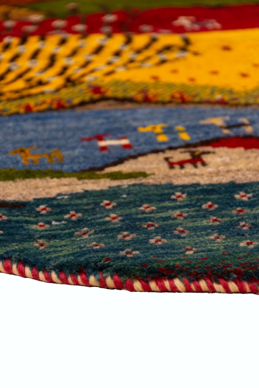 این گبه دستباف قشقایی، حاصل دستان خلاق و دل شاعرانهی بانویی از ایل قشقایی است؛ اثری که در هر گرهاش، روح زندگی، صدای زمین و رنگهای زندهی طبیعت جاری است. این گبه با قطر یک متر، نه فقط یک فرش یا زیرانداز، بلکه تابلویی زنده از زیبایی و خلاقیت است، آفریدهای از طبیعت و برای طبیعت.