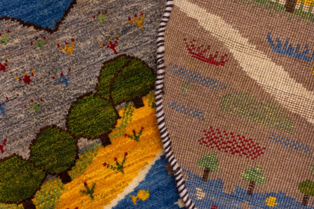 گبه گرد دستباف با طرح منحصر به فرد الهامگرفته از آسمان، کوه و رودخانه: