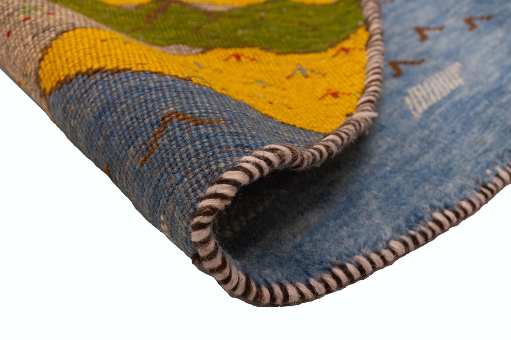 این گبه گرد خاص، ترکیبی است از رنگ، نور، زندگی و خیال؛ گویی بافنده با دستانش طبیعت را لمس کرده و آن را در قالب تار و پود، جاودانه ساخته است. نگاهی به این گبه، همانند نگاهی به یک صبح بهاری در دل کوهستان است؛ پر از انرژی، زندگی و آرامش.