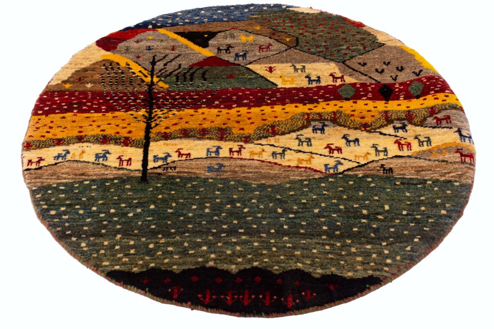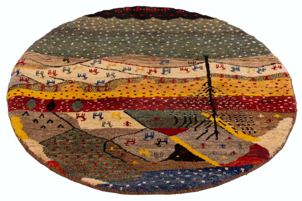 این گبه گرد دستباف نمونهای منحصربهفرد از هنر و تخیل بافندگان عشایر قشقایی است؛ گبهای که در هر گرهاش ردی از احساس، درک و نگاه عمیق بافنده به زیباییهای طبیعت نهفته است. قطر این گبه حدود یک متر است و بهصورت کاملاً گرد و قرینه بافته شده؛ شکلی که در میان گبهها کمتر دیده میشود و همین ویژگی، آن را به اثری خاص و چشمگیر برای تزیین هر فضایی تبدیل کرده است.