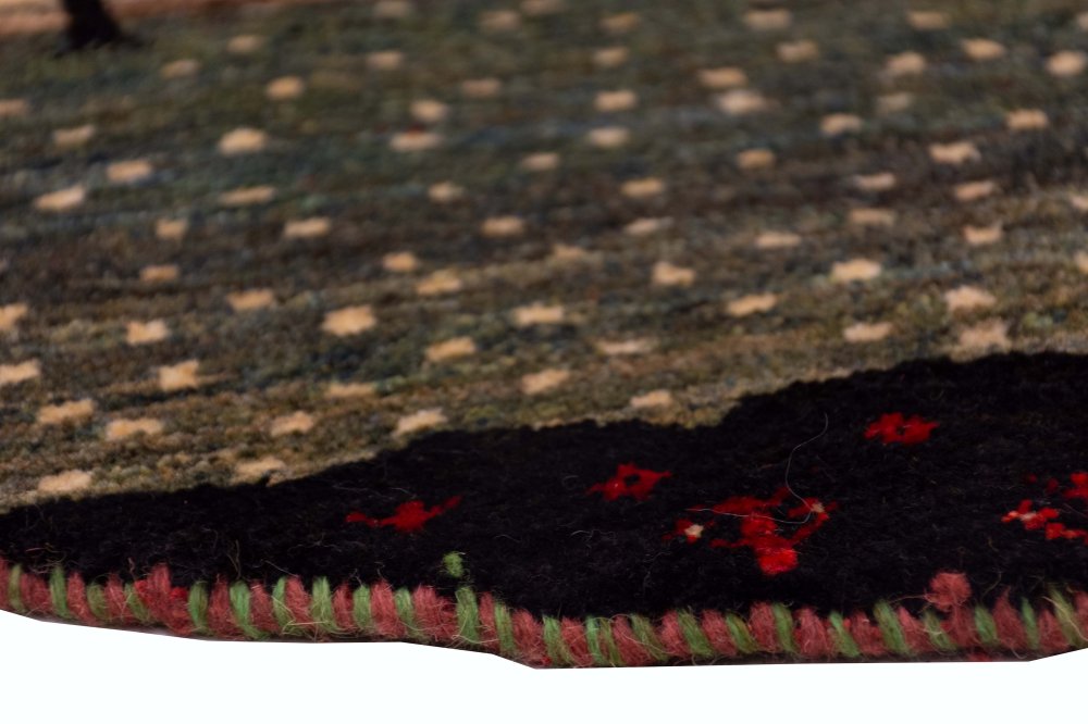 این گبه نهتنها از نظر طرح و رنگ چشمنواز است، بلکه از نظر فنی نیز در بالاترین سطح کیفیت قرار دارد. پشم طبیعی، رنگهای گیاهی، و بافت نرم و متراکم، همگی گواه دقت و مهارت بافندهاند. گبه گرد با نقش طبیعت، برای استفاده به عنوان فرش دکوری، زیر میز گرد، یا آویز دیواری انتخابی ممتاز است.