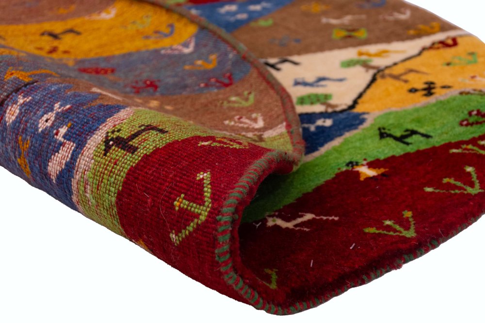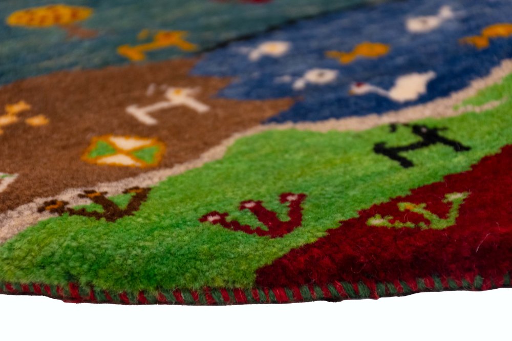 اگر به دنبال گبهای هستید که حس شادی، آرامش و اصالت را همزمان به فضای خانهتان بیاورد، این گبه گرد قشقایی با طرح طبیعت زنده، بهترین انتخاب است—یک تابلوی زنده از زمین، آسمان و انسان.